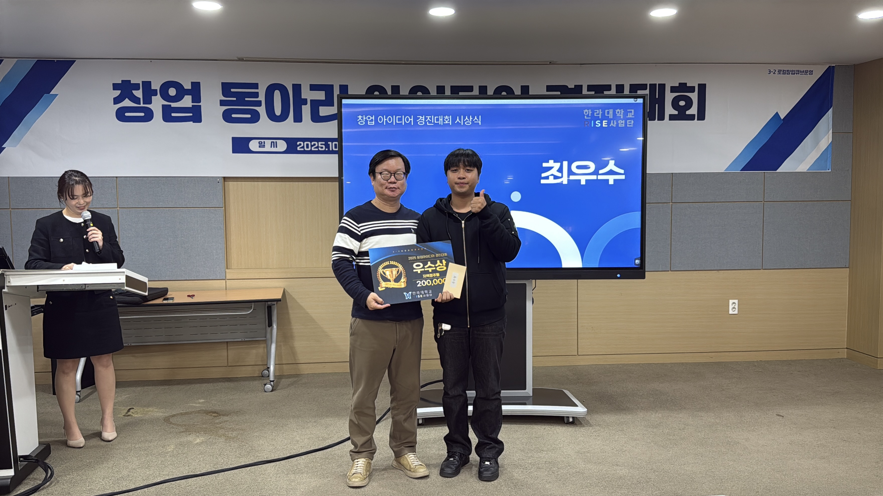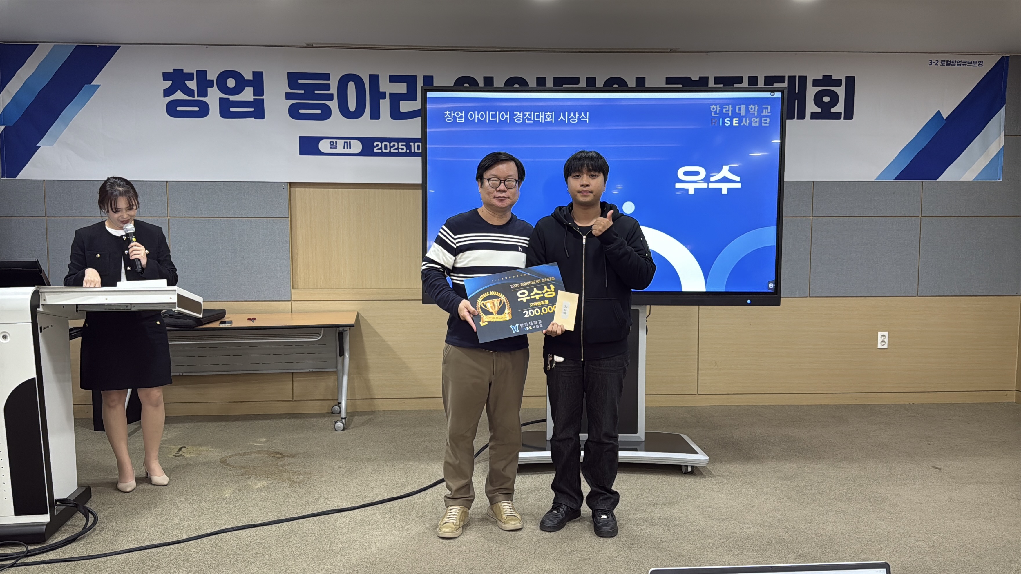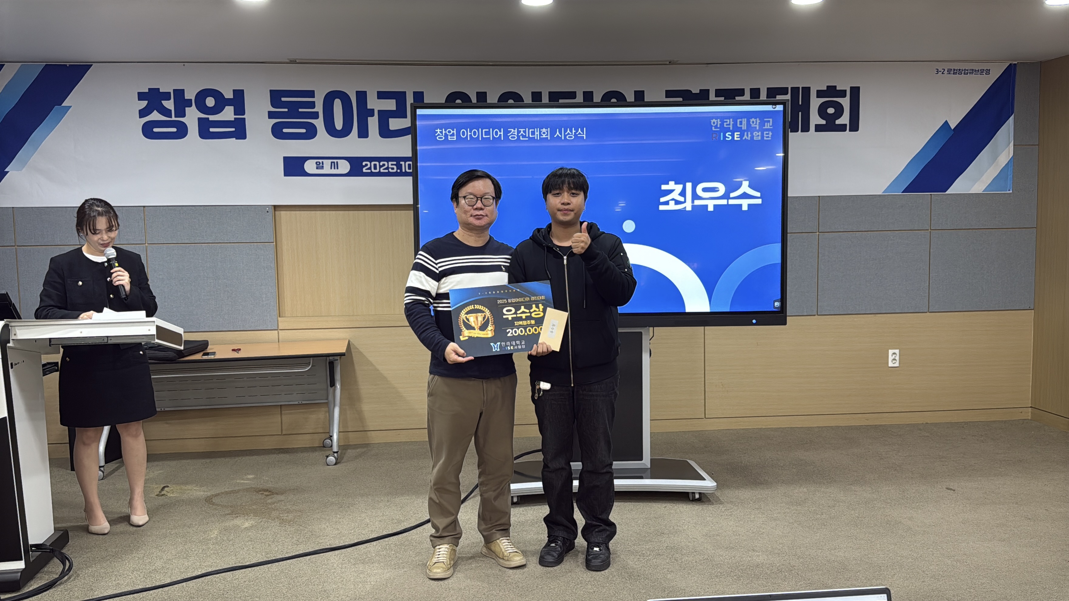 우리 학과 한유빈 학생이 ‘한라대학교 창업 경진대회’에서 우수상을 수상했습니다!