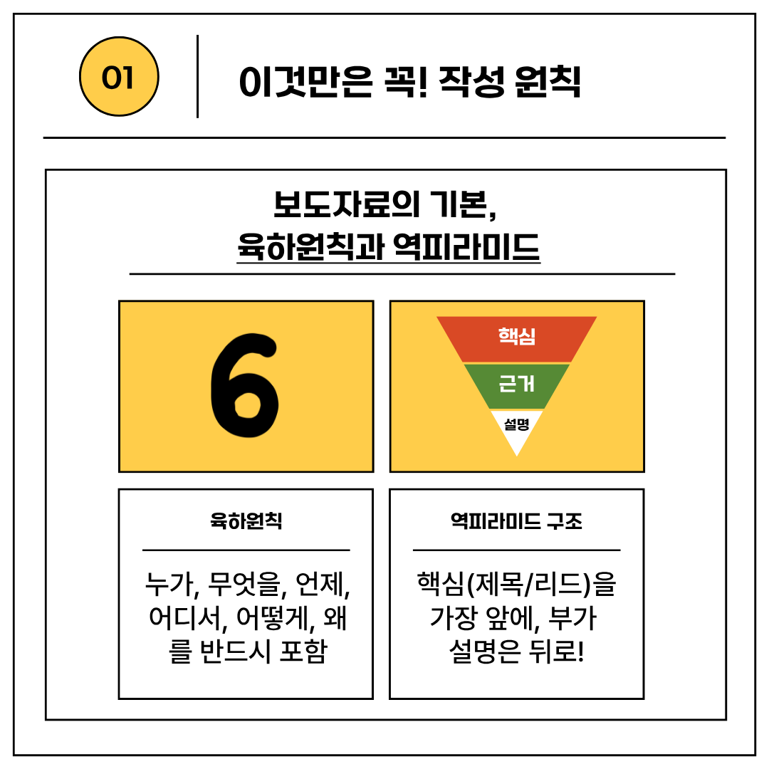 보도자료는 어떤 내용을 먼저 쓰고, 어떻게 정리해야 기사로 이어지는지 정해진 구조가 있습니다.이번 카드뉴스에서는