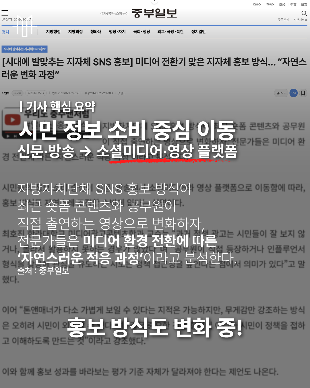 지방자치단체 SNS 홍보 방식이 숏폼 콘텐츠와 공무원 직접 출연 형식으로 변화하고 있습니다.
