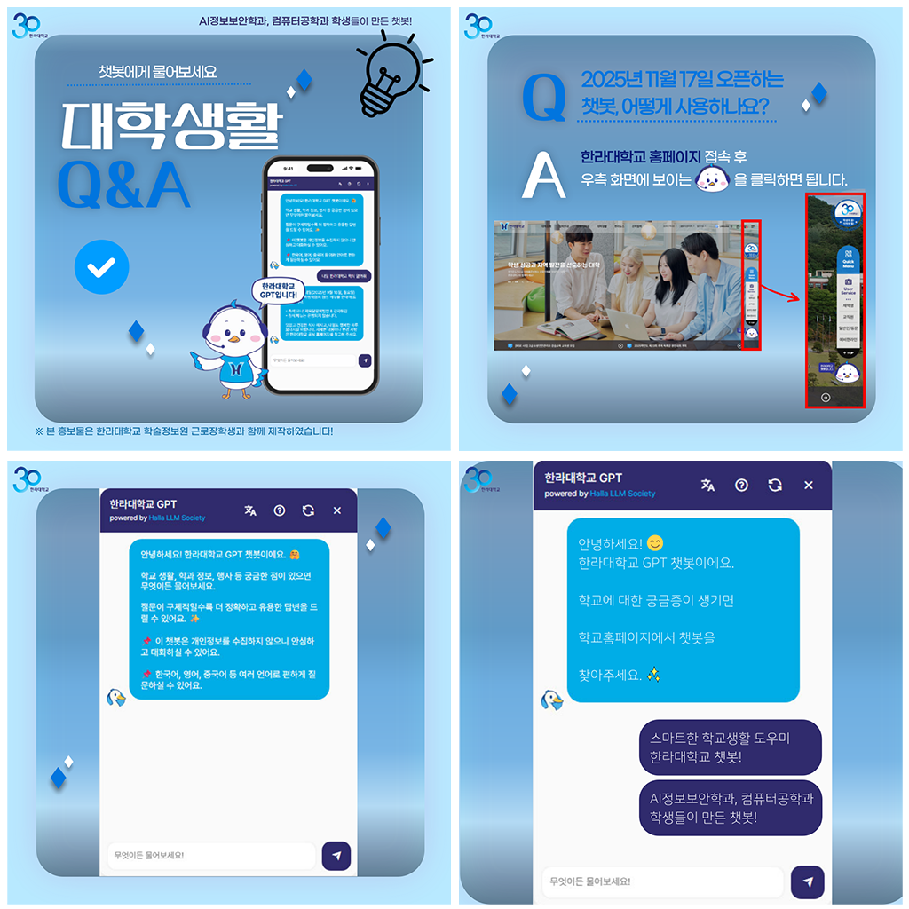 AI정보보안학과, 컴퓨터공학과 학생들이 만든 한라대학교 챗봇을 오픈합니다.